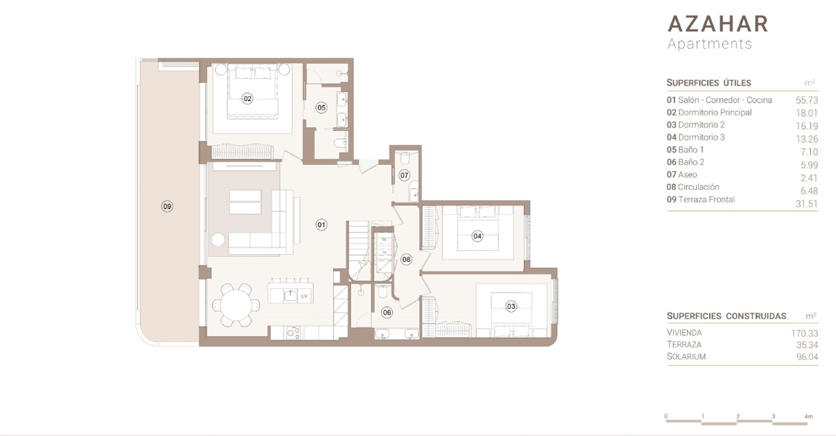 Luxurious penthouse in the exclusive Azahar residential project at Las Colinas Golf & Country Club right on the golf course. With units offering 2 or 3 bedrooms, spacious terraces with open views and/or private garden and luxurious penthouses with panoramic sea views and unique features. High quality kitchen appliances from Siemens, air conditioning with air zone control throughout the property, underfloor heating in the bathrooms, LED lighting throughout, fitted wardrobes and electric shutters in all bedrooms. Underground garage with 1 parking space per unit and private storage room. Communal pool (partially heated) surrounded by a beautifully landscaped garden area for extra privacy.