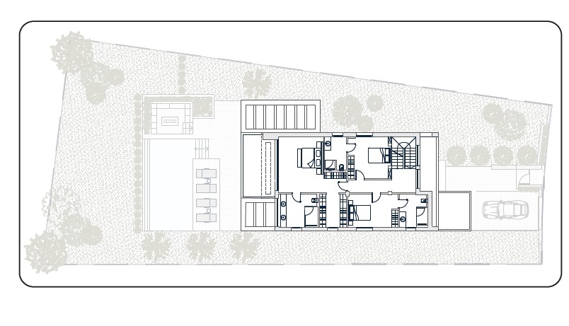 At the top there is a large roof terrace with stunning views of the golf course, a chill-out seating area with fire feature and the solar panel area.