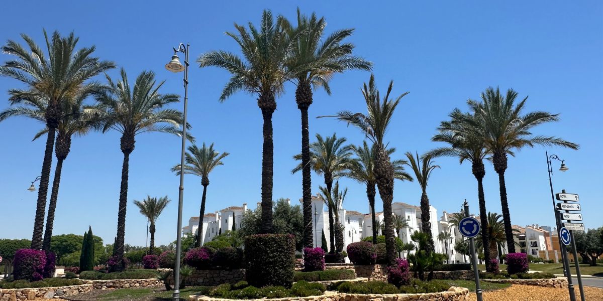 The resort itself is surrounded by a Mediterranean landscape with palm trees, orange groves and rolling hills. Murcia Airport (RMU) is around 15 kilometers away and offers good connections to international destinations.