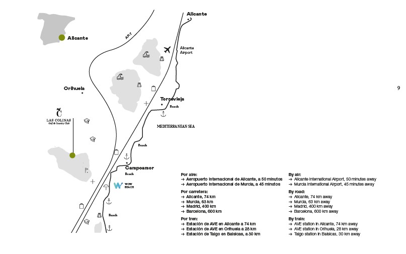 Despite its location close to nature, Las Colinas has excellent connections: The international airports of Alicante and Murcia are both around 40 minutes away, as are numerous attractive coastal towns, marinas, shopping centers and international schools.