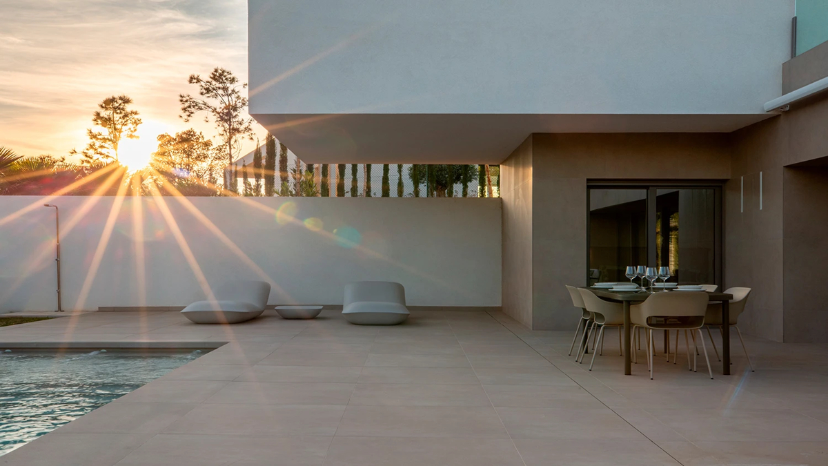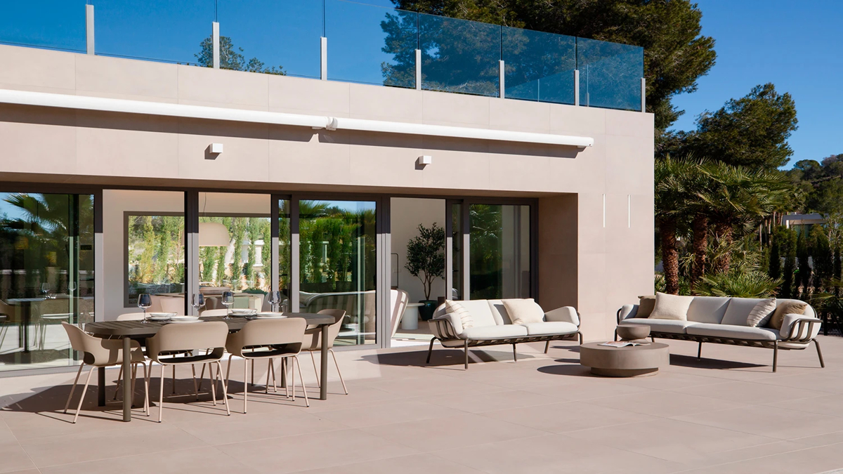Die Villa bietet ein 699 m² großes Grundstück und 150 m² Wohnfläche auf zwei Ebenen, ergänzt durch großzügige Terrassen, einen weitläufigen Garten und einen privaten Pool, der den Außenbereich zur echten Erholungsoase macht.